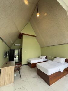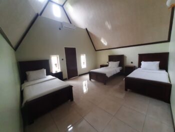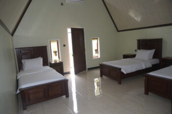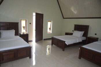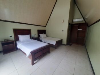 A spacious room designed with modern minimalis floor provides a comfortable acomodation in 24 square meter with two bed, air conditioning, standing shower with water heater and free Wi-fi Acces