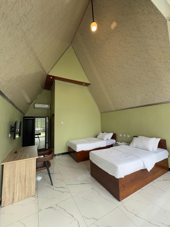 A spacious room designed with modern minimalis floor provides a comfortable acomodation in 24 square meter with two bed, air conditioning, standing shower with water heater and free Wi-fi Acces